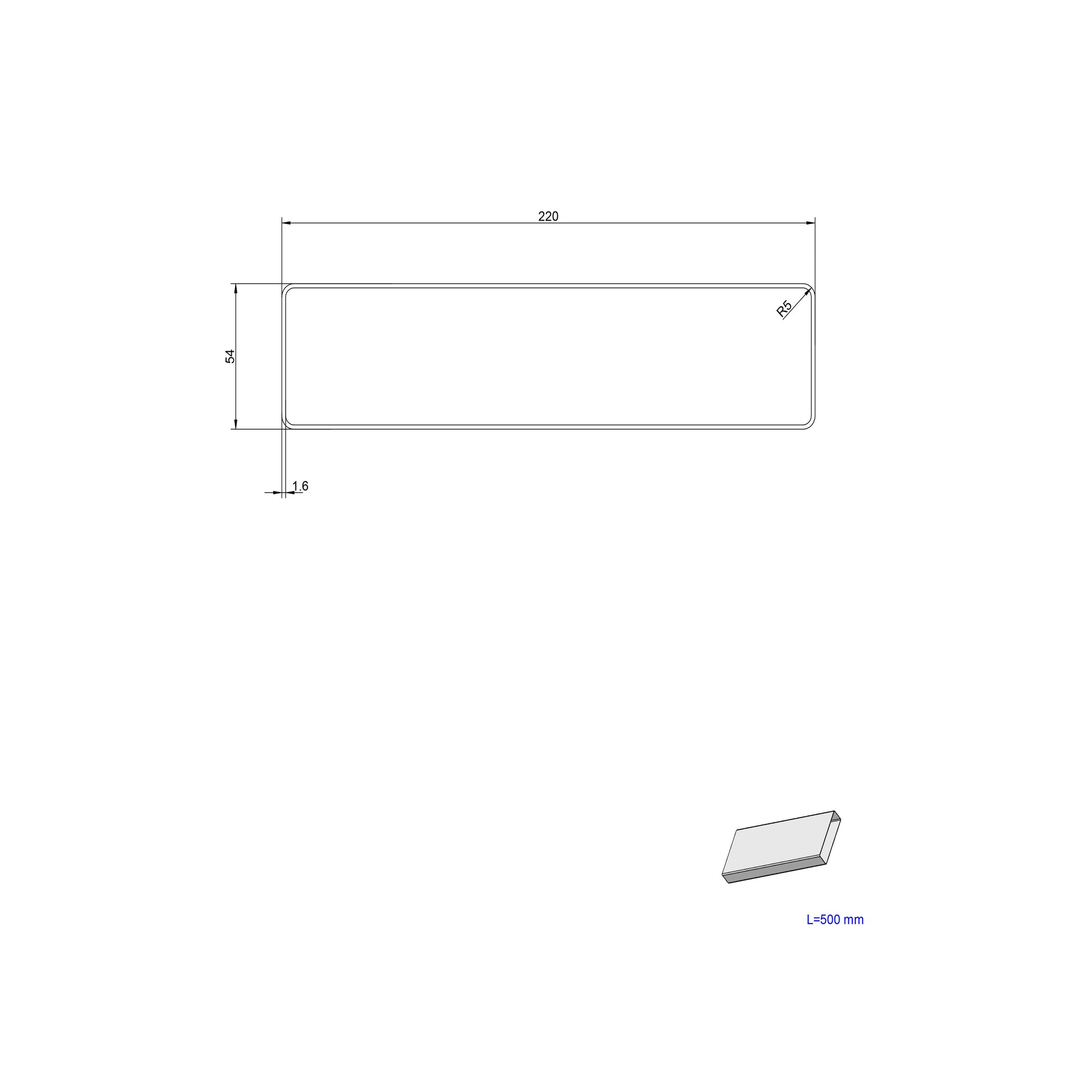 Das KIT0121012 ist ein rechteckiges starres Rohr mit Ein- und Ausgangsöffnungen von 218 x 55 mm und einer Länge von 50 cm.